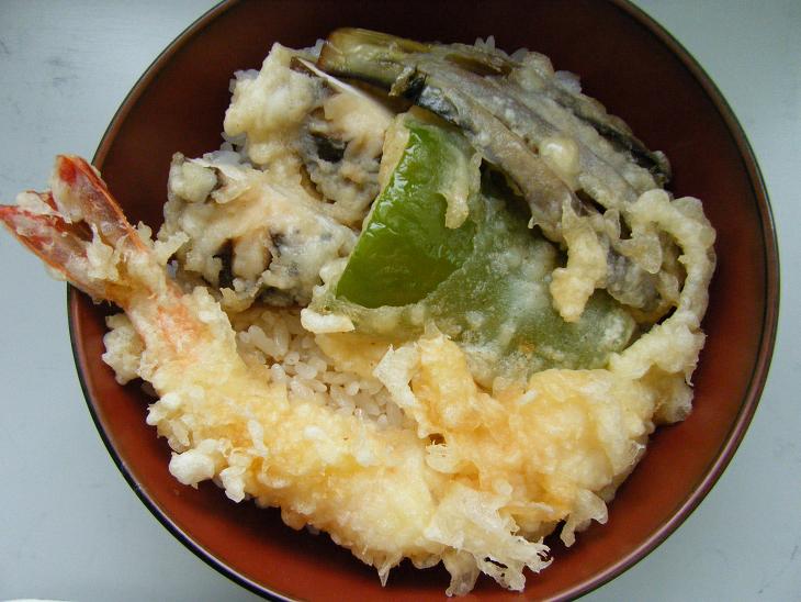 天丼の天ぷらは、えび・しいたけ・なす・ピーマンでした