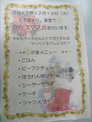 ケーキとプリン、シャンメリーとぶどうジュースは、利用者さまのご家族さまである後援会からのプレゼントです