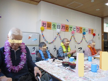 お食事は「ありがとう!おいしいよ」と召し上がっておりました みなさまお誕生日おめでとうございます!これからも元気にお過ごしください( ^ω^)ノ