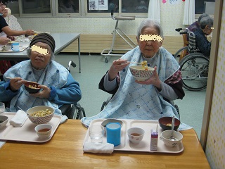 愛光園では午前中に豆まきをし、夕食にお食事会を行いました