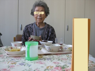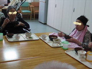 上の写真の左の利用者さまは、いつもお食事を「おいしい」と言って下さっていまして、今日はぜひ調理員さんに感謝の気持ちを伝えたいということでお話しして頂きました