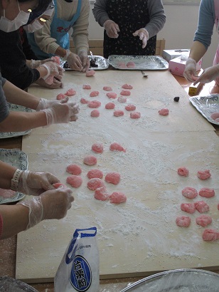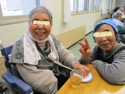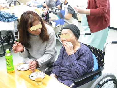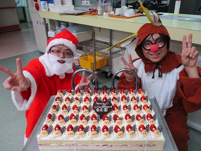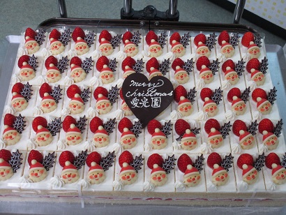 ケーキとプリン、シャンメリーとぶどうジュースは、利用者さまのご家族さまである後援会からのプレゼントです