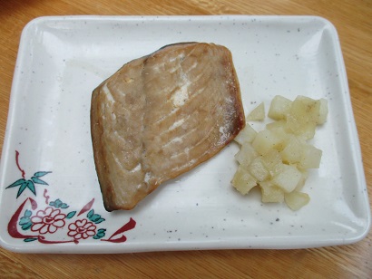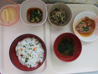 ごはん・ひっつみ汁・焼き魚さば・春菊辛子和え