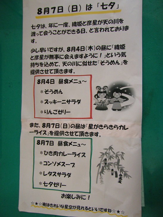 お食事で七夕の雰囲気を楽しんで頂けたでしょうか