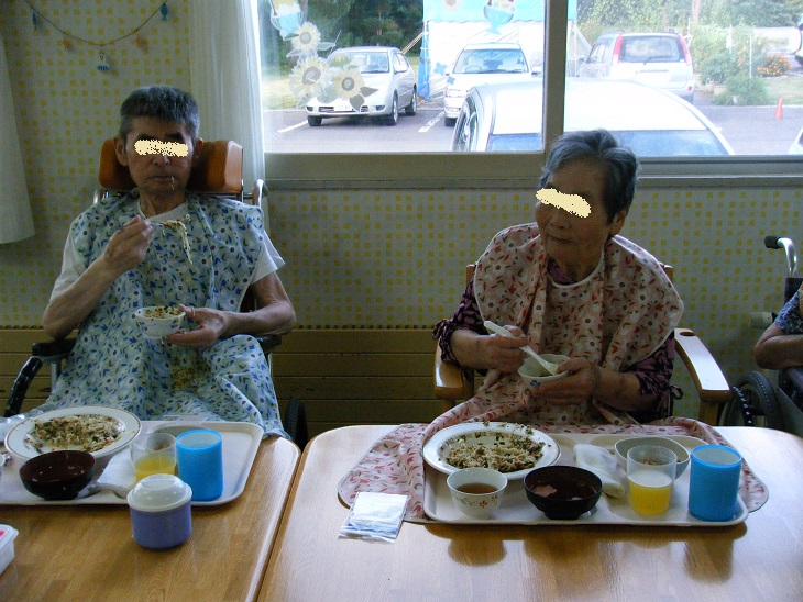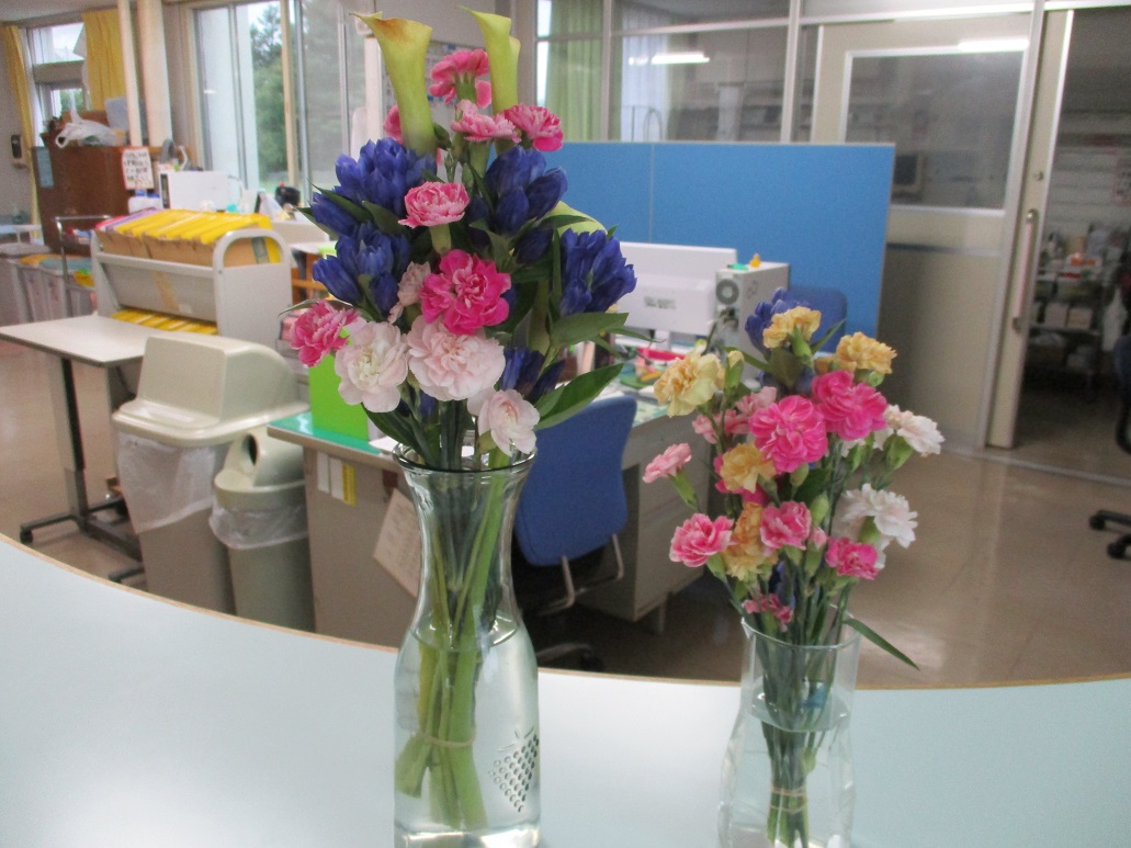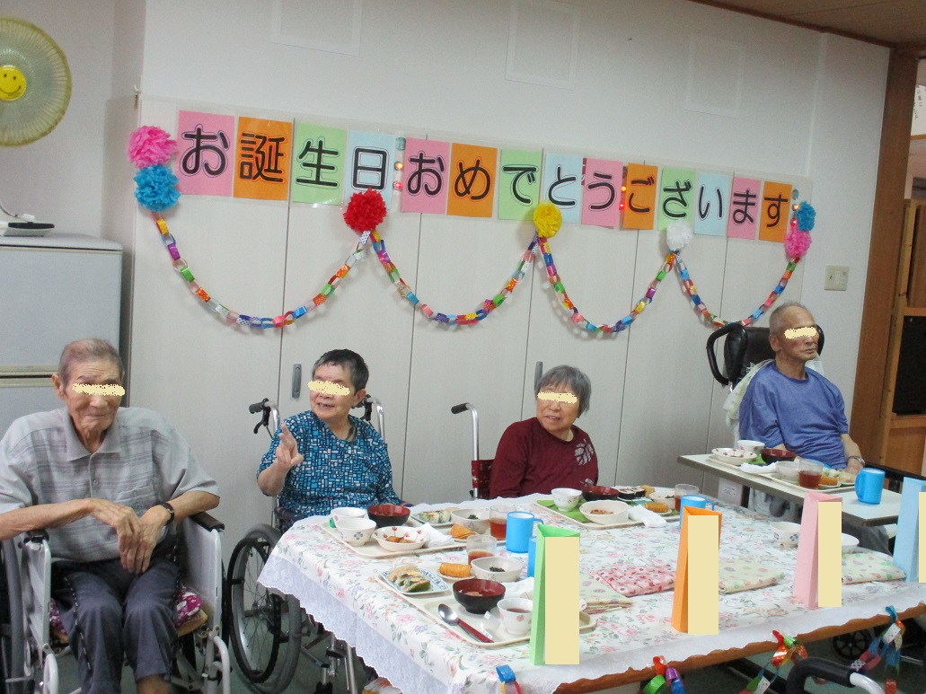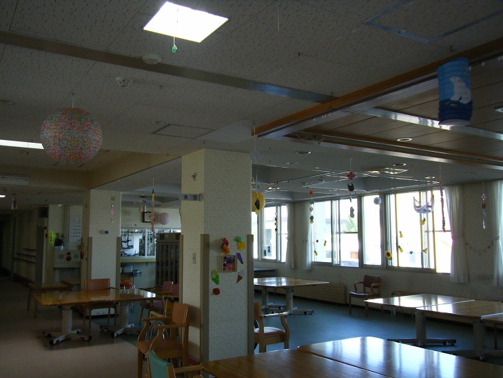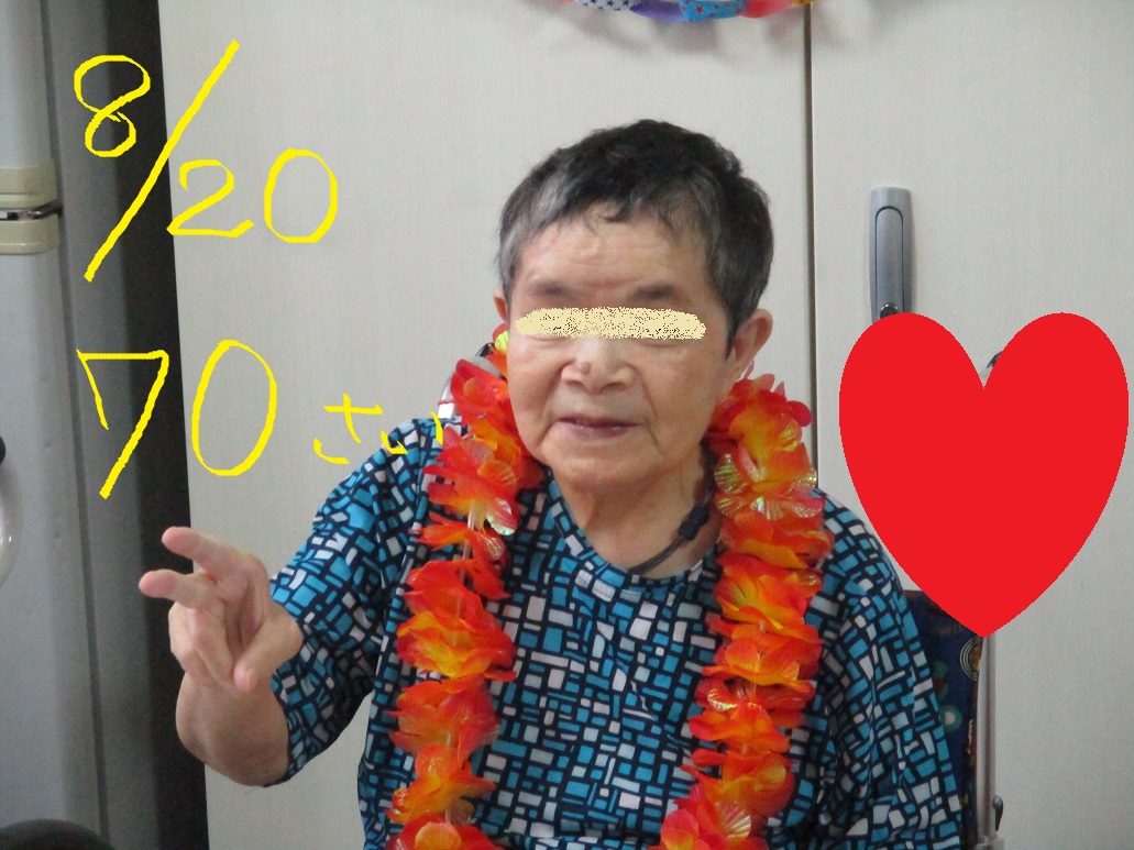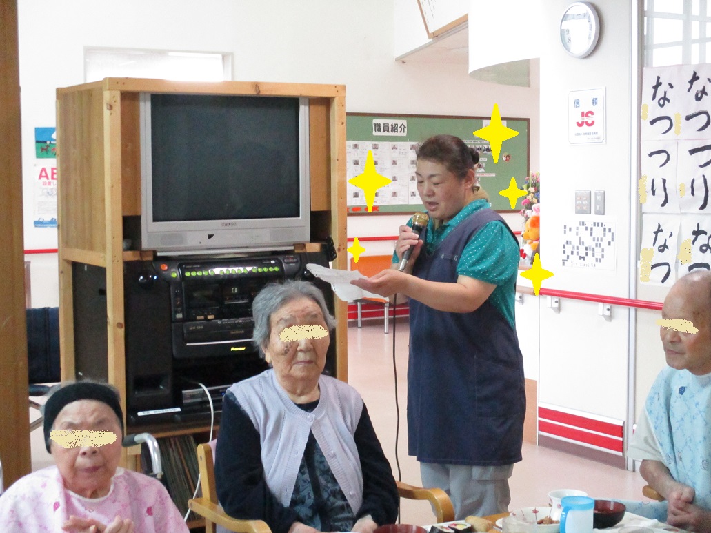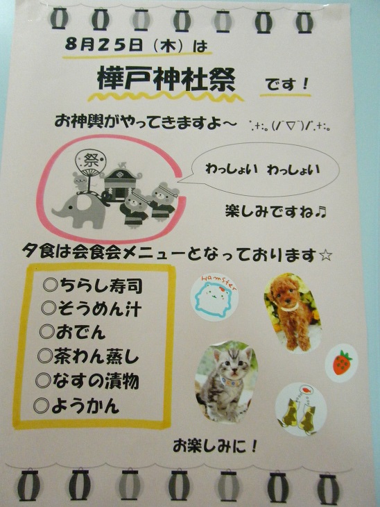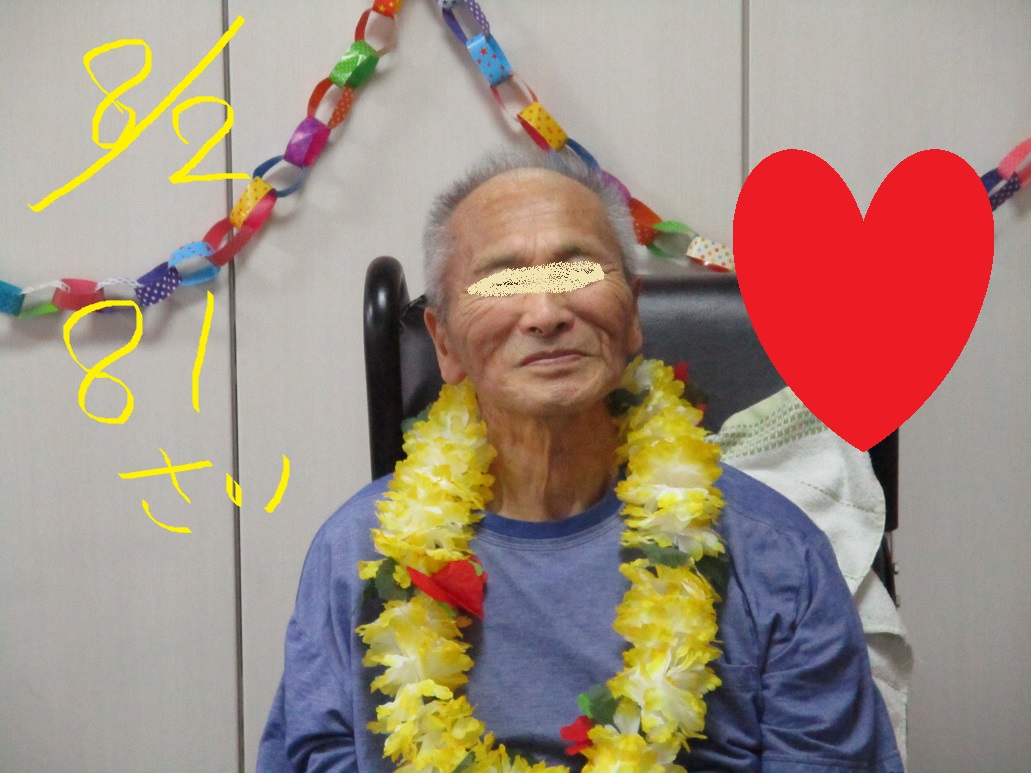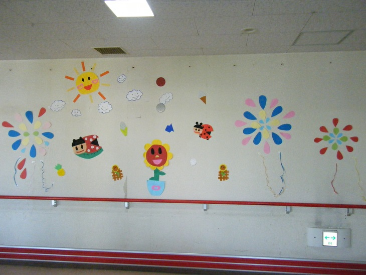 花火は以前Y看護師が夏祭り用に作って下さったものですが、それ以外はH介護員が作って飾り付けしてくれました!