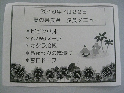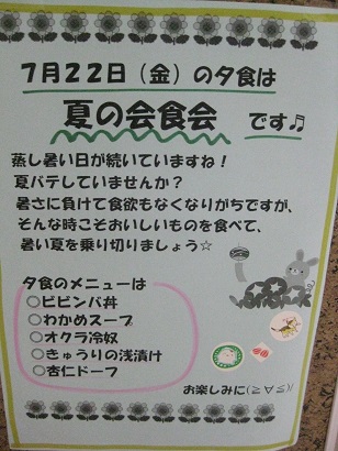 さて、7月27.28.29日はお昼に「お楽しみ会食会」がありました