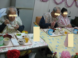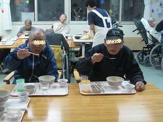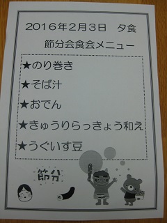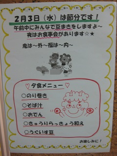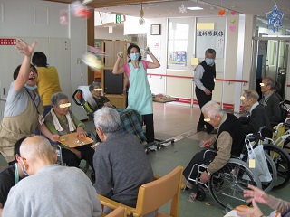 愛光園では午前中に豆まきをし、夕食にお食事会を行いました