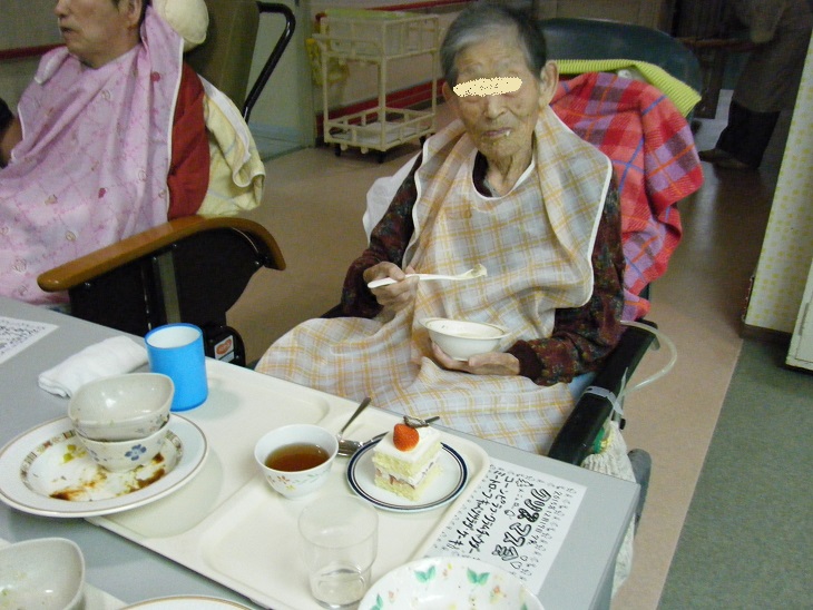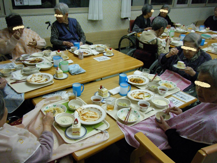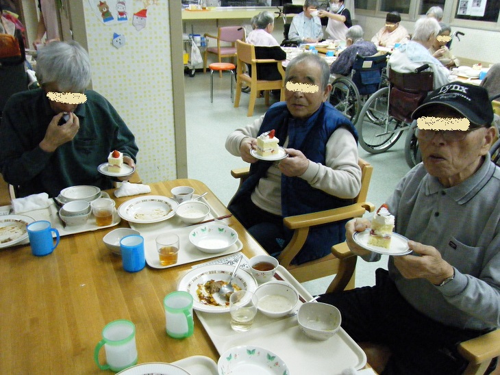 ケーキとシャンメリーは、利用者さまのご家族である後援会からのプレゼントです![]()