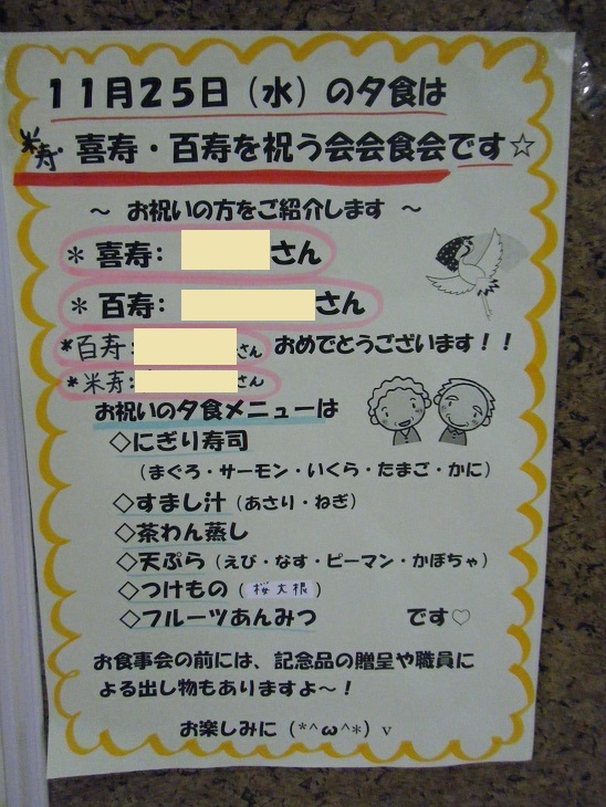 11月25日に喜寿・米寿・百寿を祝う会が行われました。