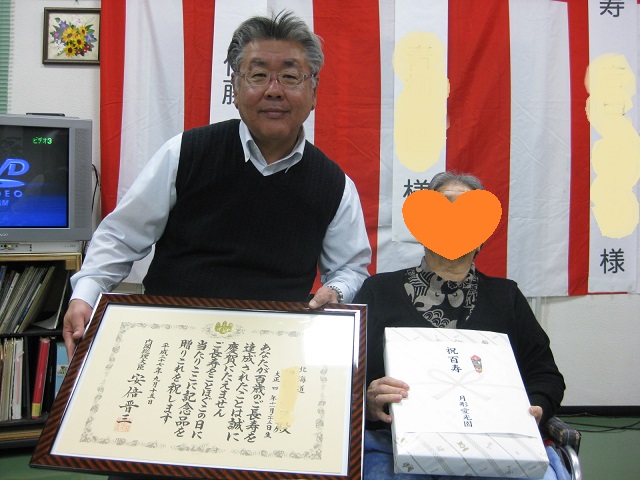 百歳のお祝いに安倍総理大臣からの祝状と銀杯が届きました。