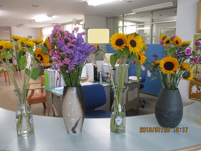 こちらは利用者さまのご家族さまから頂いたお花です