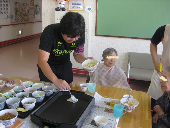 お好み焼きって一人だとなかなかしないのですが、こうやって何人かで行うと楽しいですし、おいしく食べられますね(^∀^)/