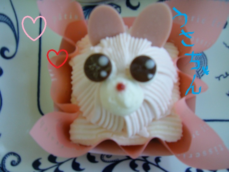 K介護員がうさちゃんケーキを指さして、「わんちゃんだよー。かわいいね。」と言っていたので、すかさず「うさちゃんです」と言ってしまいました笑