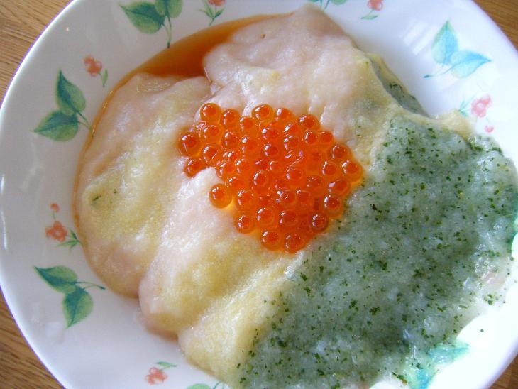 脂身ではきれいな白い色がつかないため、ちくわをミキサーにかけて脂身にみせかけて下さったとのことでした。