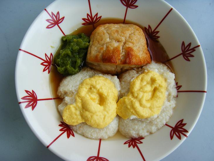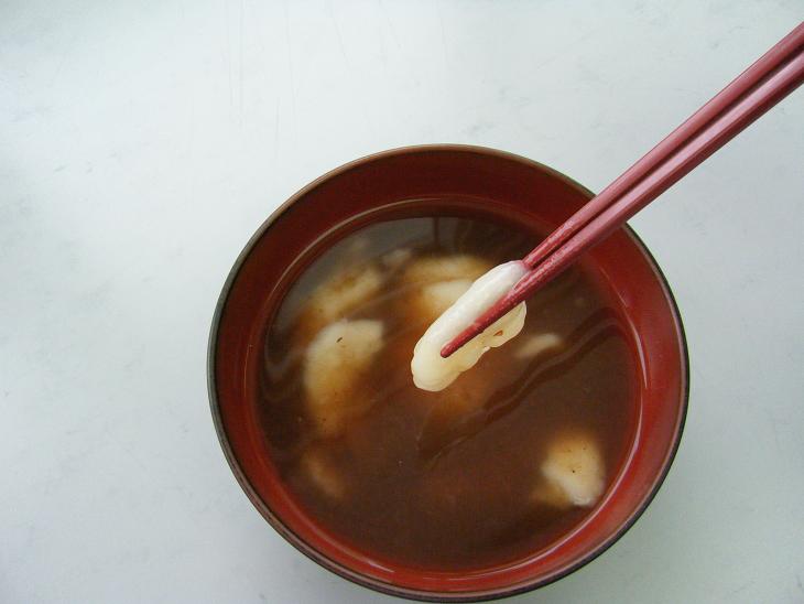 お餅じゃないんですよね、豆腐と白玉粉で作った「お餅風」ですけど、モチモチツルツルの美味しい食感です。