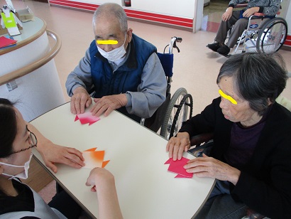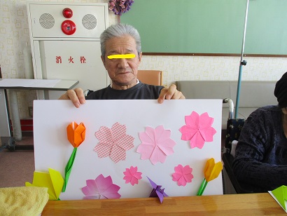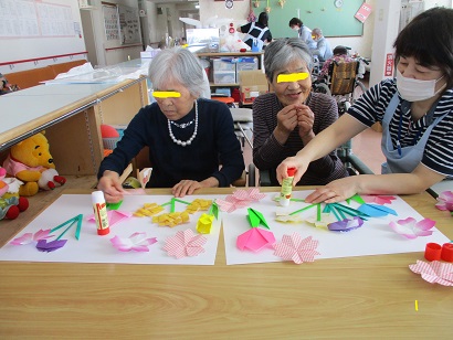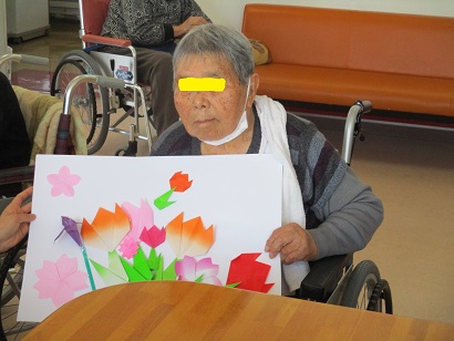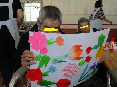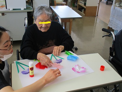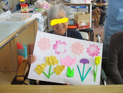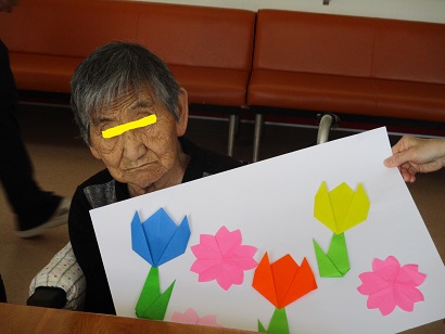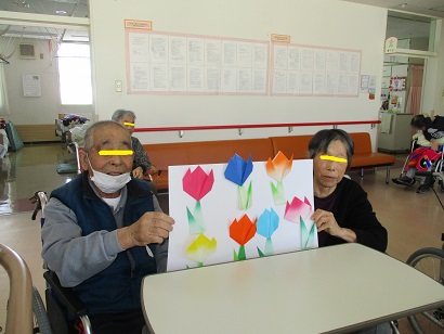 チューリップを一生懸命折ってくれた利用者様も楽しく